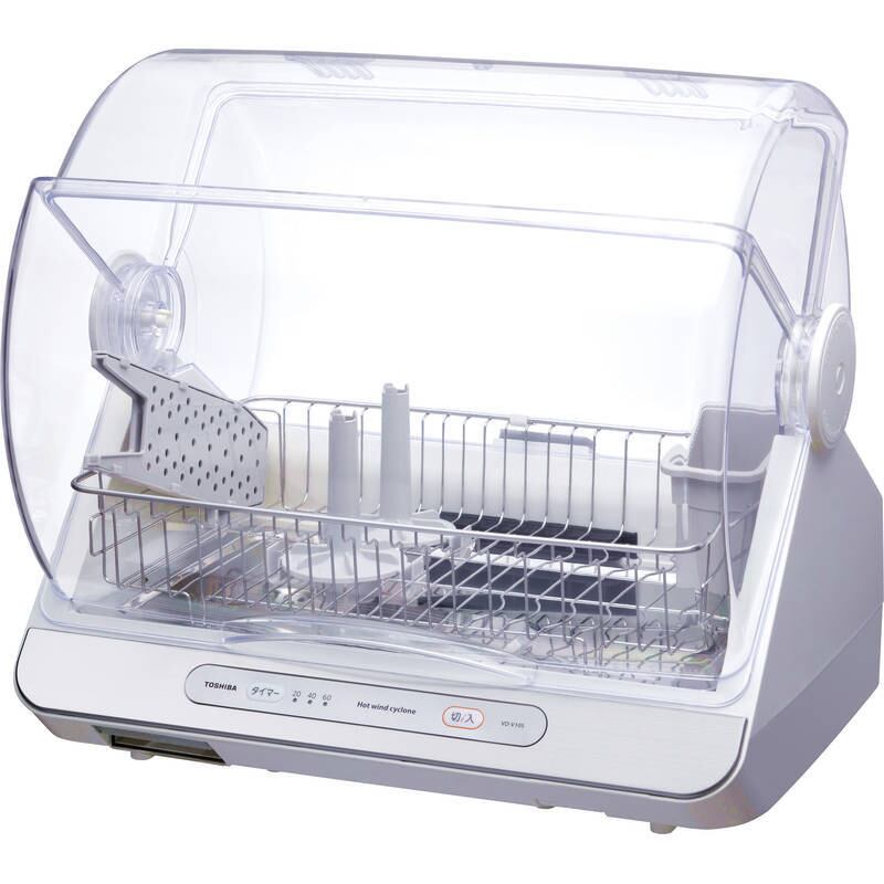 「東芝 食器乾燥機 VD-V10S(W)」は、コンパクト設計ながら6人分の食器とまな板まで一度に乾燥可能。両サイドからの熱風と90℃ワイド熱風サイクロンドームで、しっかり乾燥&衛生的に仕上げます。